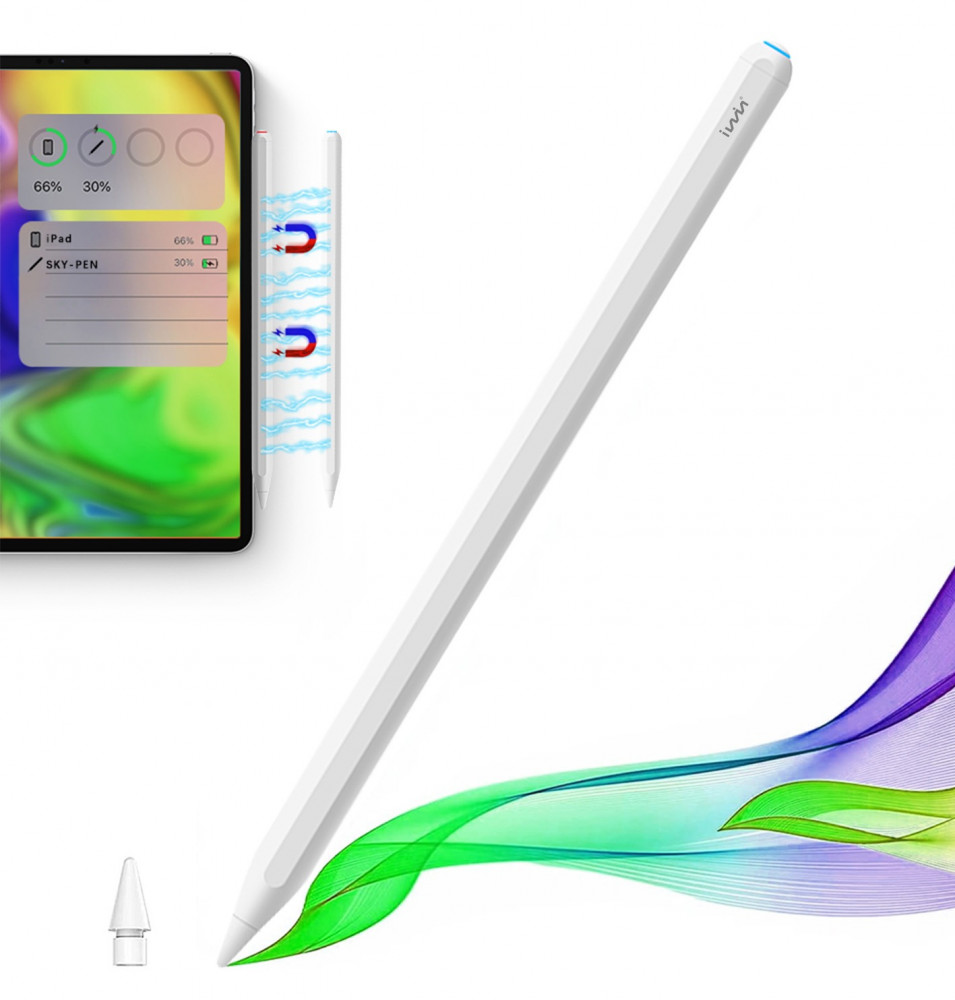 يمكن شحن قلم Iwin المطور لاسلكيًا عن طريق توصيله بالجانب المغناطيسي لجهاز الايباد .